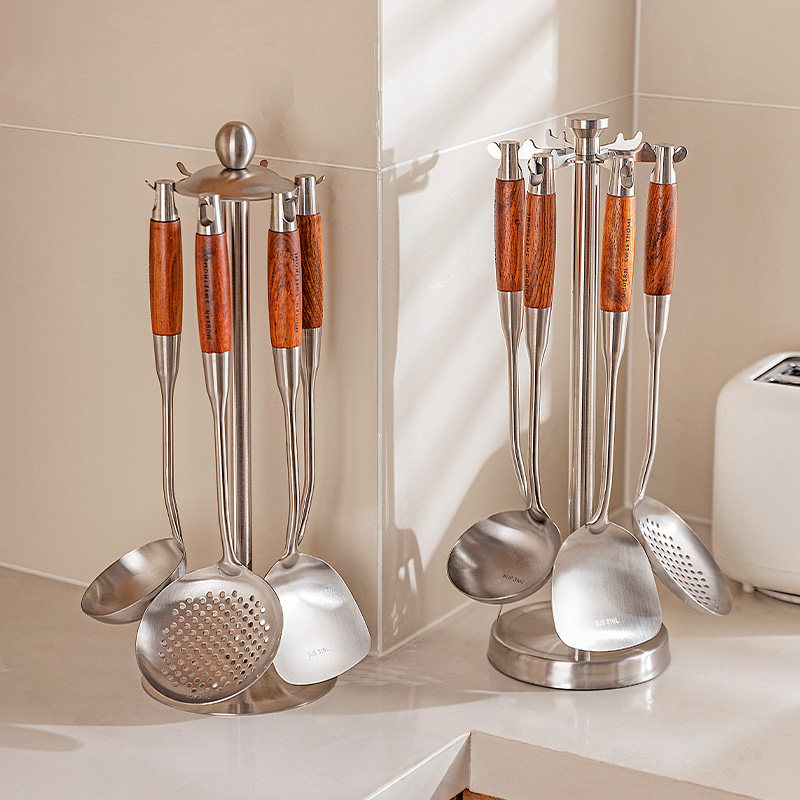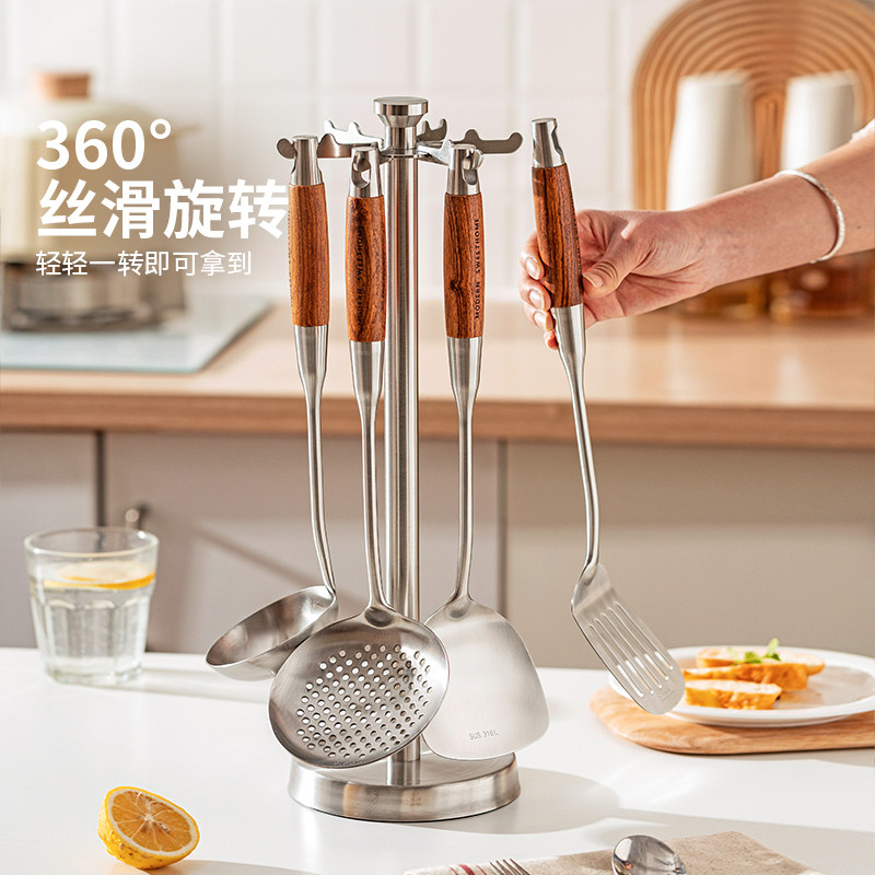 摩登主妇锅铲置物架304不锈钢厨房铲子勺子挂架旋转台面收纳架子