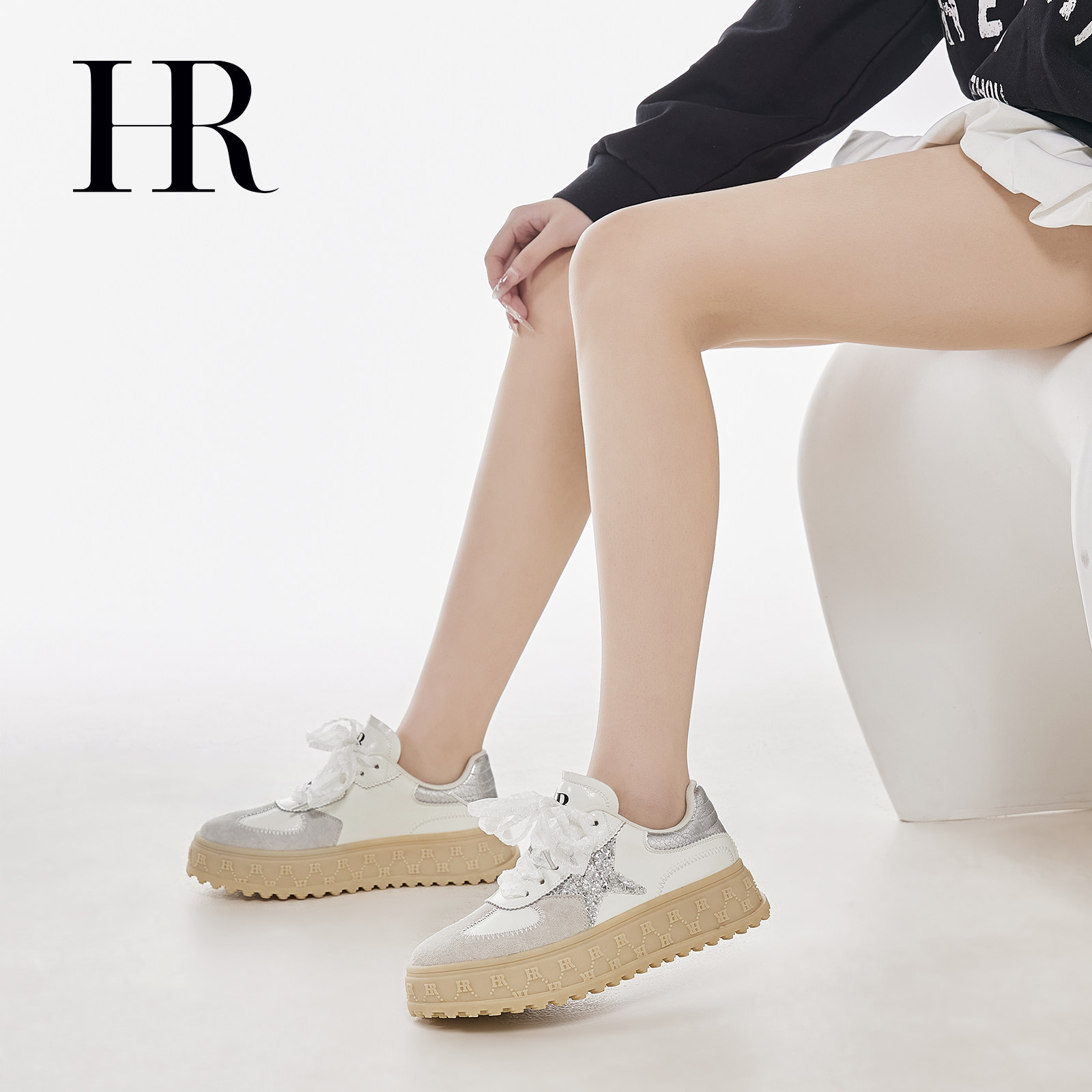 HR赫莲娜德训鞋2026春季新款女鞋子厚底舒适防滑蕾丝鞋带休闲板鞋
