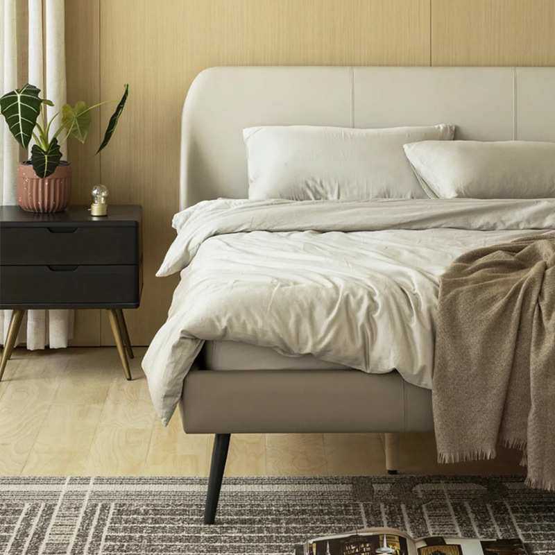 宜氧风信子床榉木排骨架真皮床现代简约意式极简实木主卧皮艺婚床