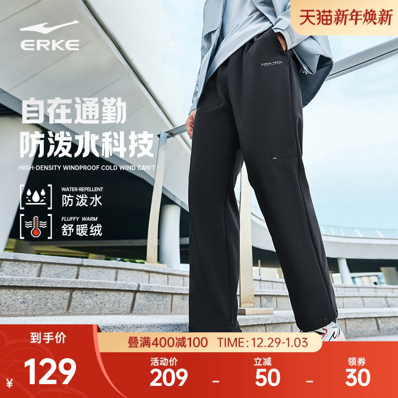鸿星尔克加绒裤子男冬季男士加厚运动裤防风直筒长裤休闲裤男裤