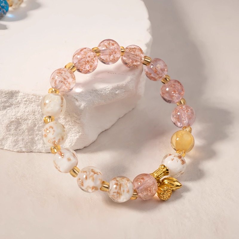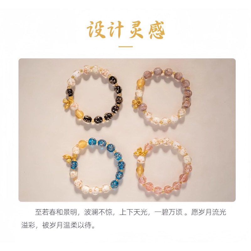 五台新款五色夜光金沙琉璃手串两世欢莲花吊坠好运手链女黑色情侣