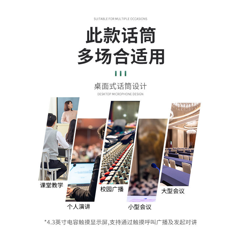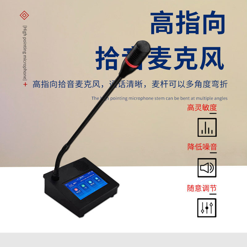IP网络寻呼话筒4.3寸屏一键广播麦克风小专业话筒公共广播设备