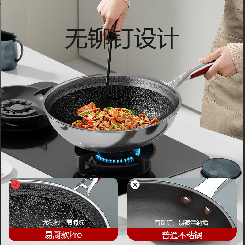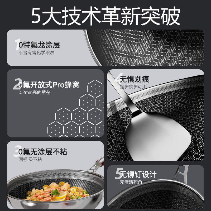 【新品】康巴赫七代真钛蜂窝锅家用无涂层炒锅不锈钢不粘锅炒菜锅