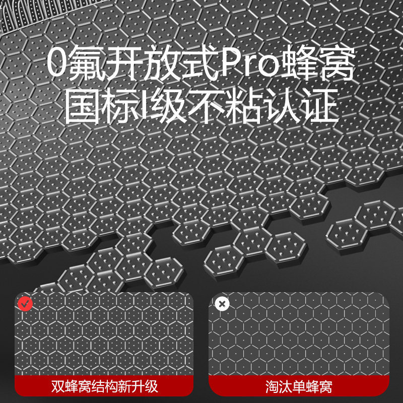 1年质保 粘锅包退 开放式蜂窝设计 3倍抗粘