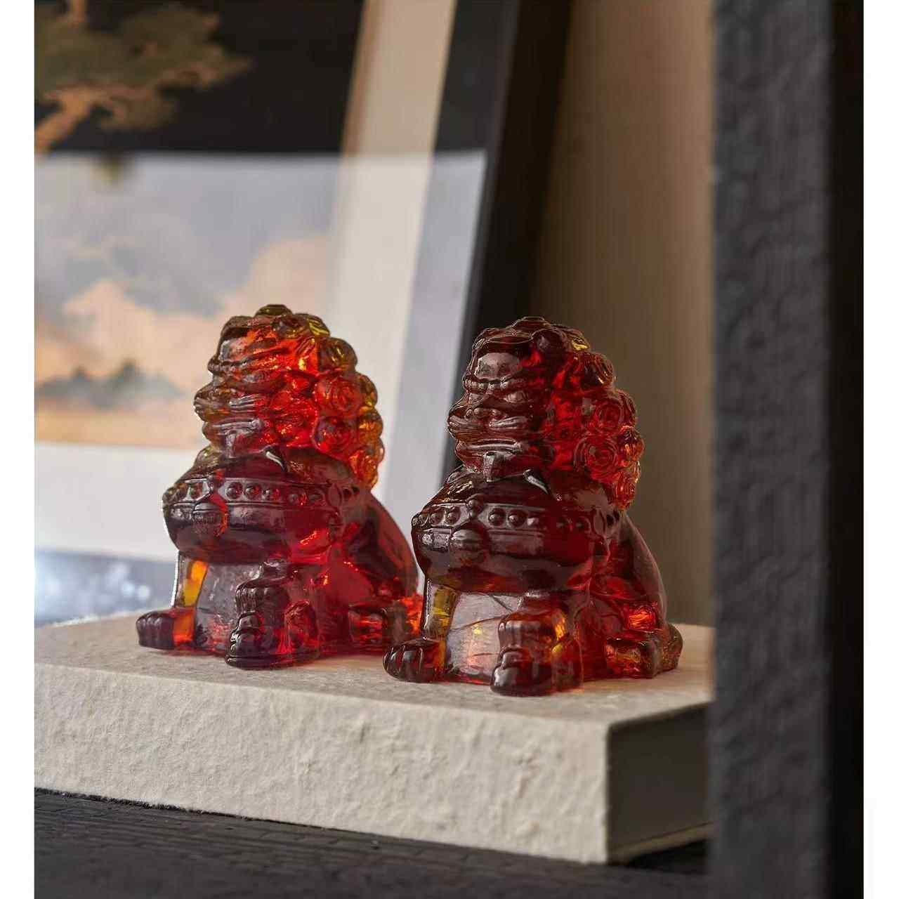 新中式树脂透明轻奢狮子摆件样板房家居书房办公室软装工艺品装饰