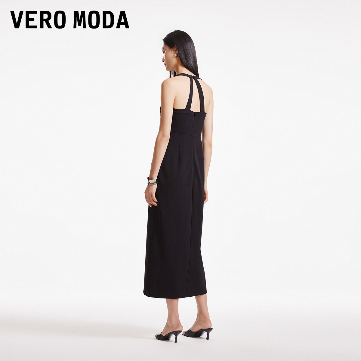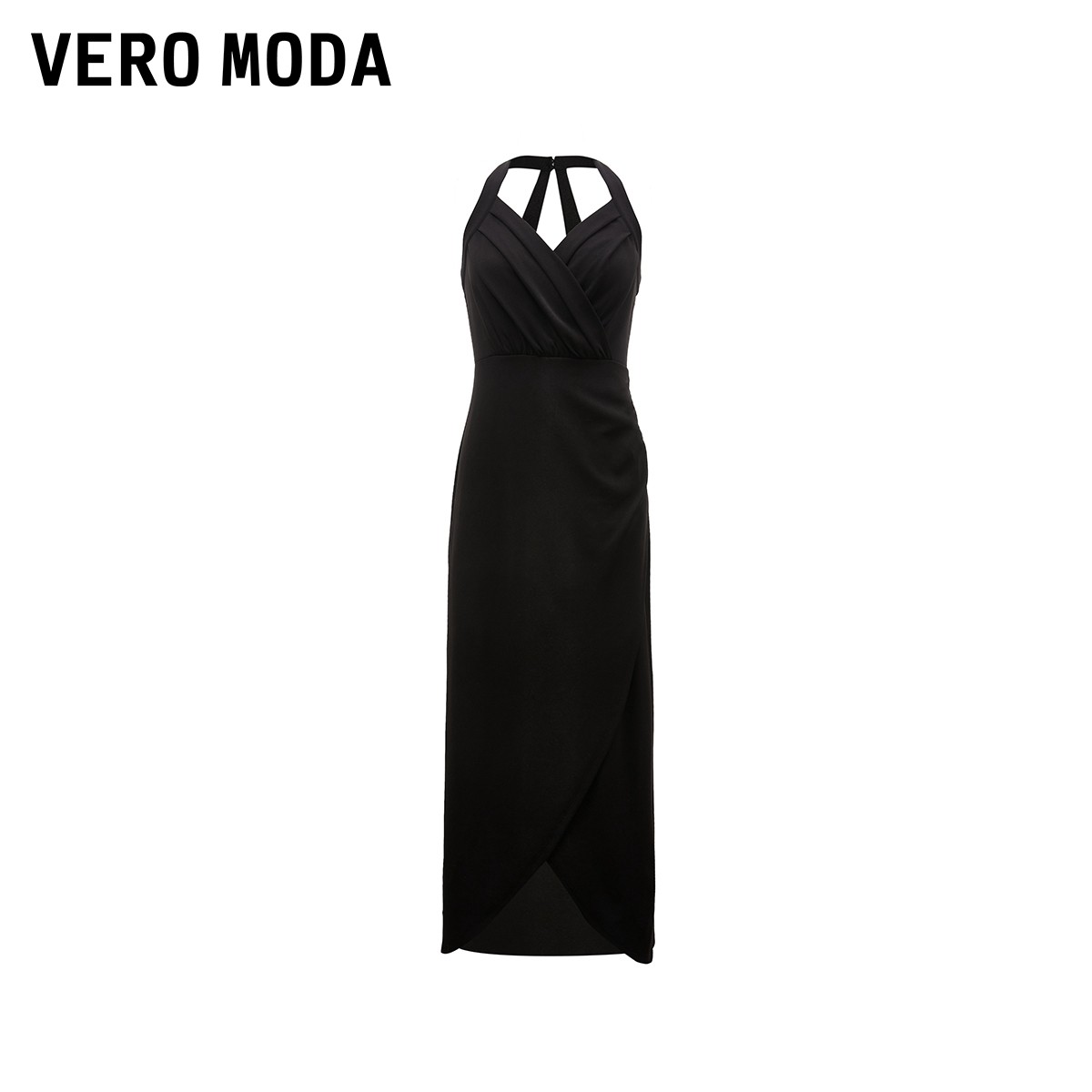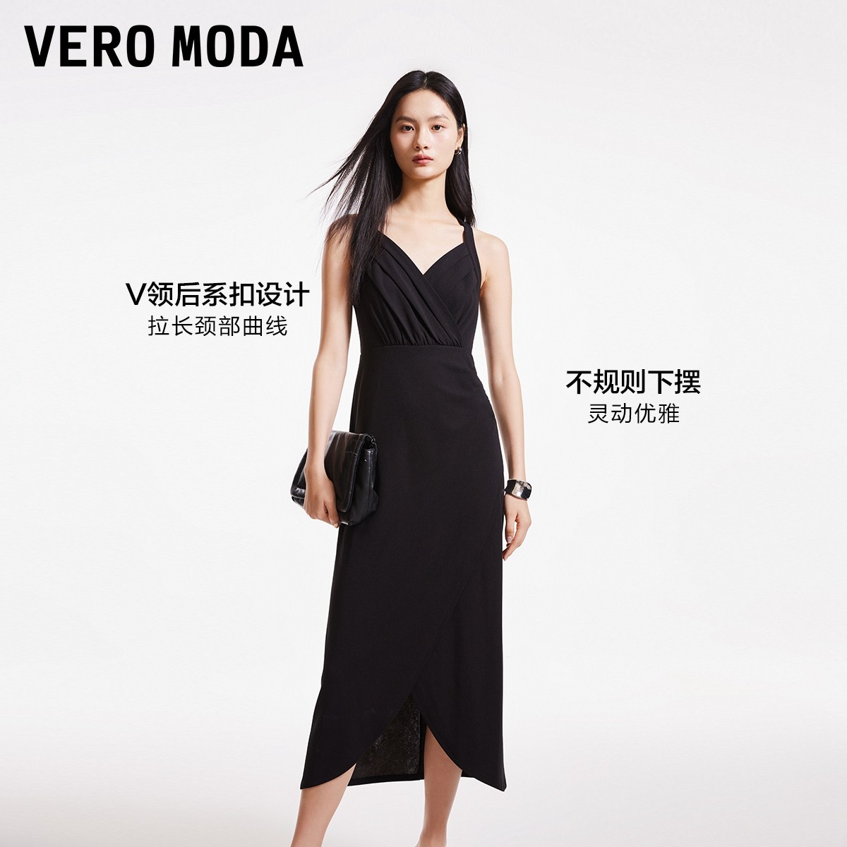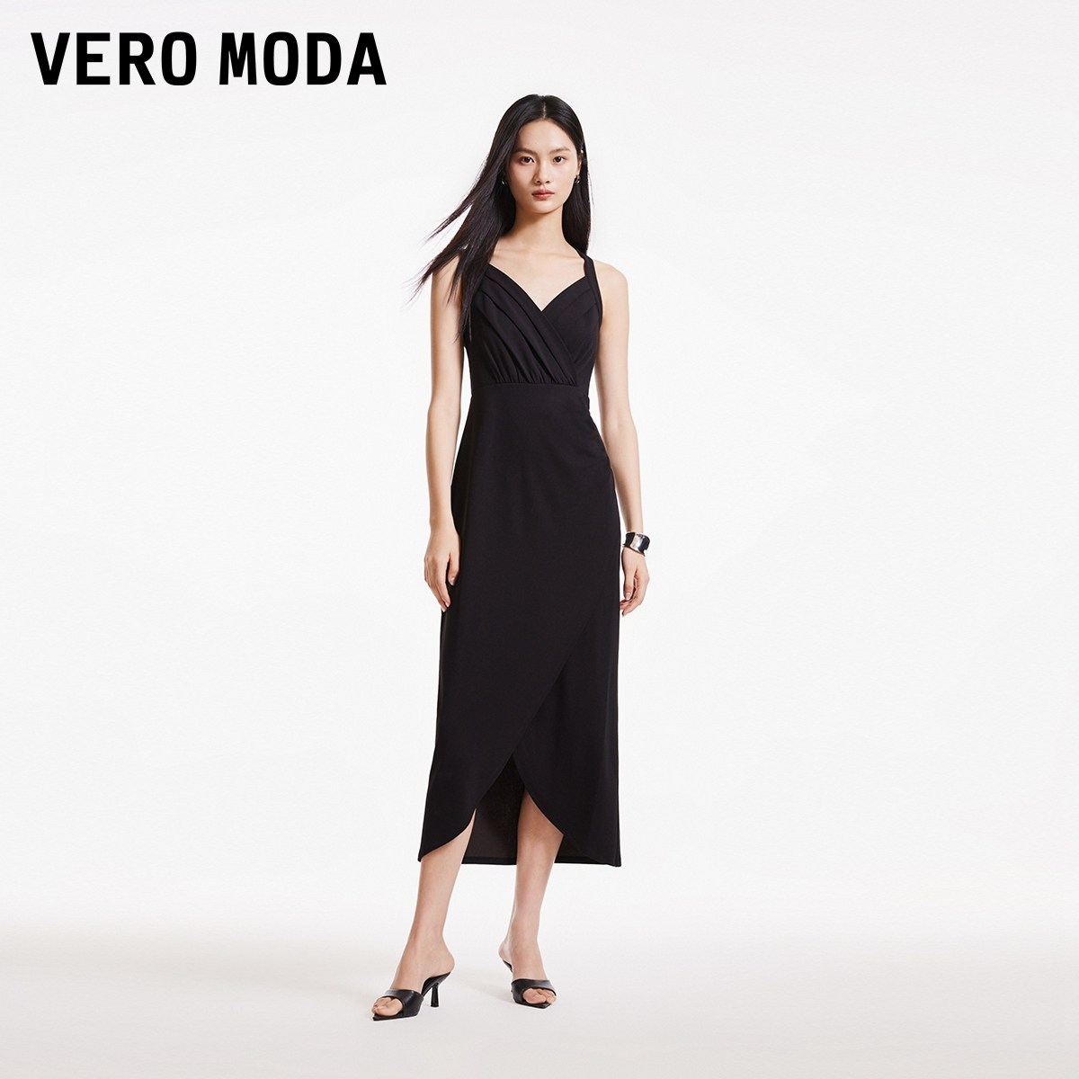 Vero Moda奥莱吊带连衣裙夏季新款收腰开叉小黑裙时尚礼百搭