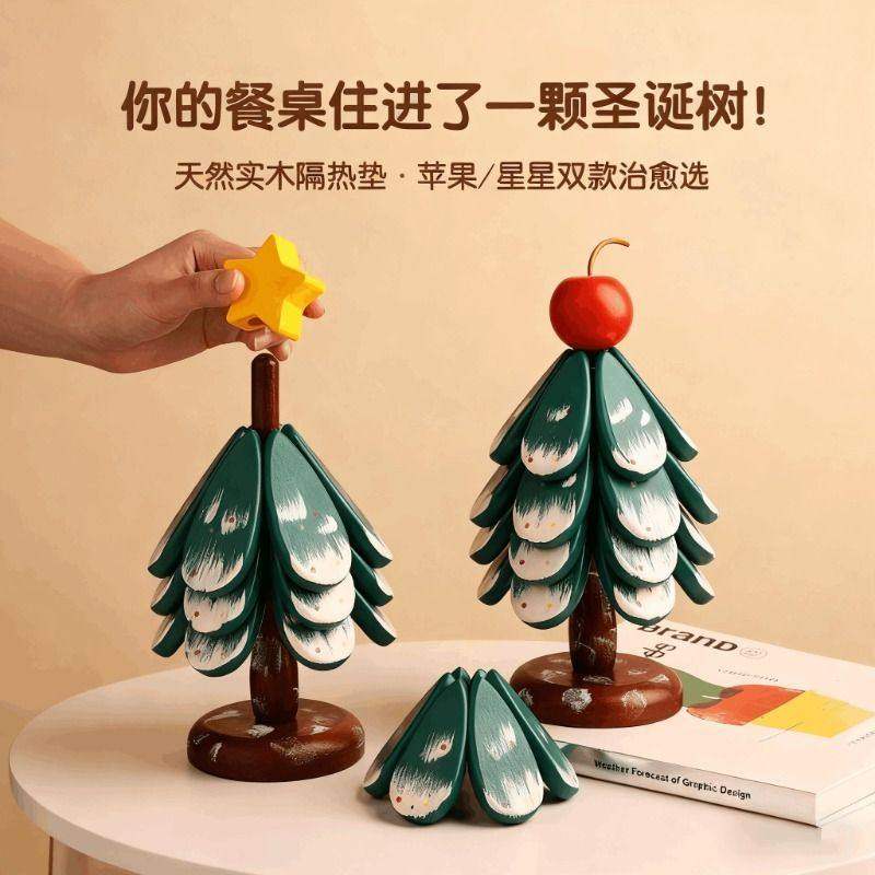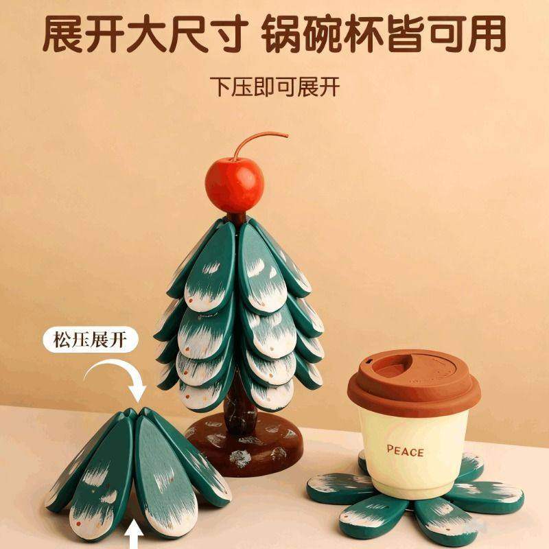 新年圣诞树隔热垫餐桌实木高级创意乔迁摆件防烫折叠锅垫杯垫碗垫