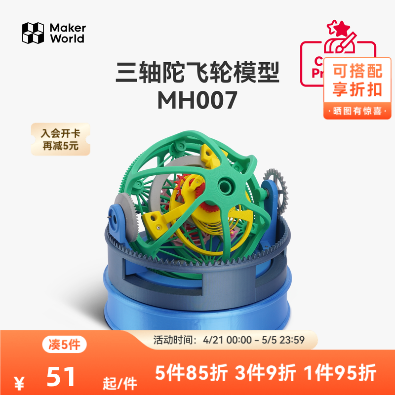 拓竹 三轴陀飞轮模型 创客宝库创意3D打印模型组件 MH007