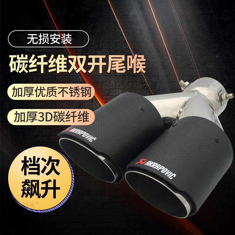 汽车排气管天蝎碳纤维双管尾喉AK尾喉AK排气管碳纤维双出尾喉Y型