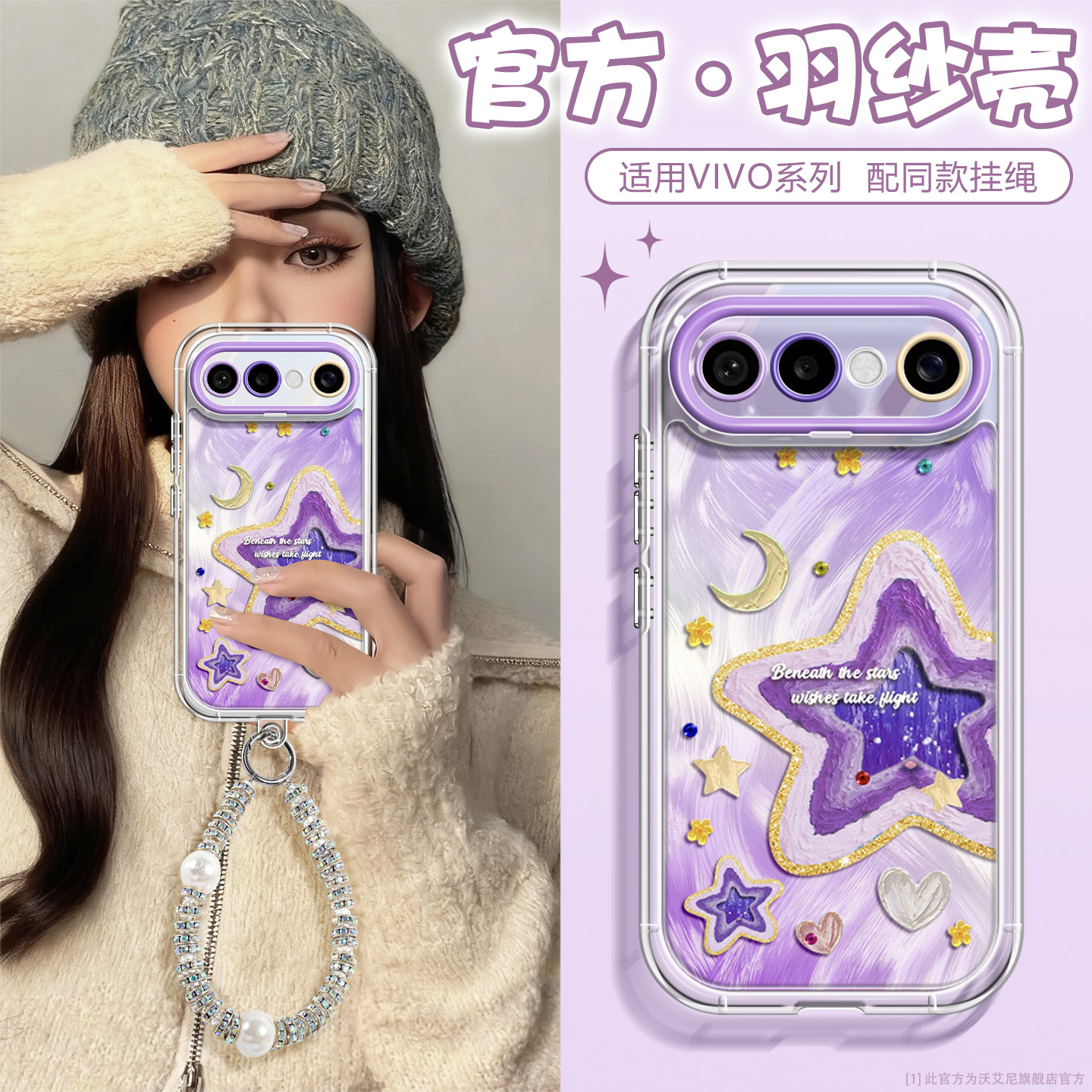 【镜头全包】适用vivoS50promini手机壳新款高级羽纱VIVOs30时尚s50pm透明s20PRO韩系镭射女s19带手链防摔套