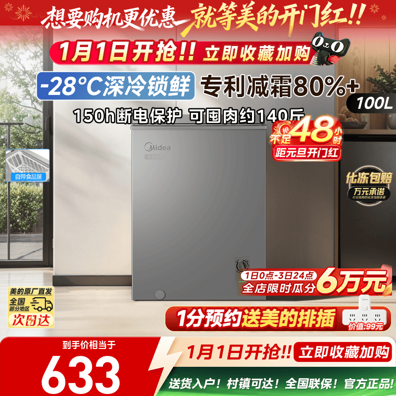 美的100升小冰柜家用小型迷你冷柜冷冻冷藏一级减霜母乳官方冰箱