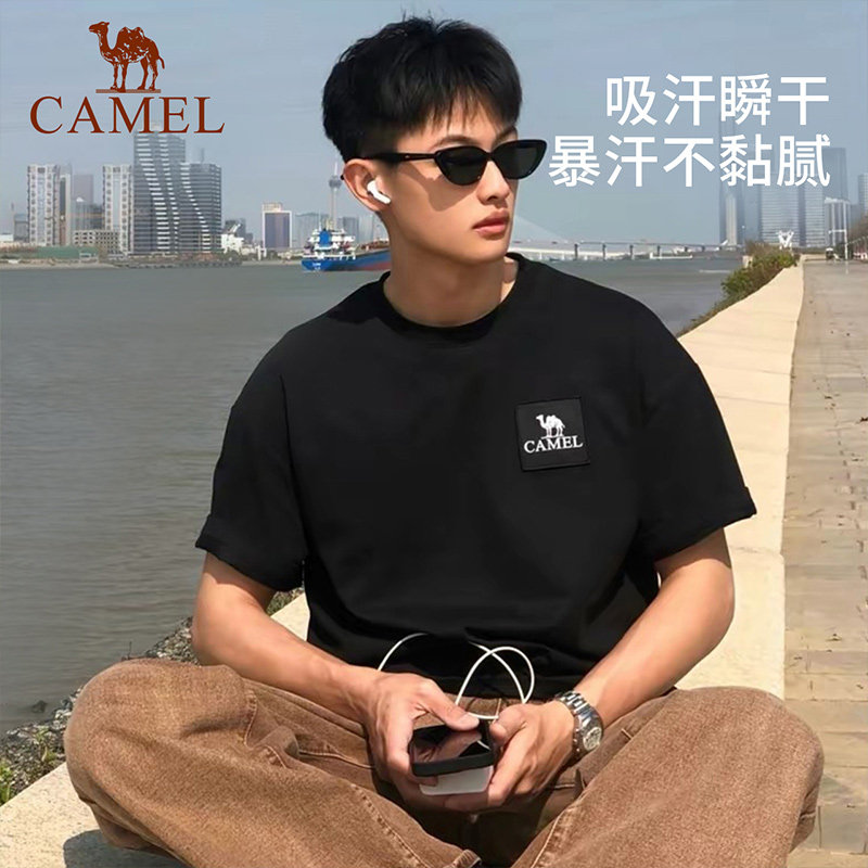 骆驼户外短袖t恤女登山速干上衣男夏季宽松情侣运动半袖快干棉T恤