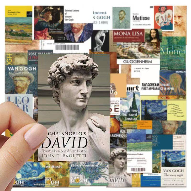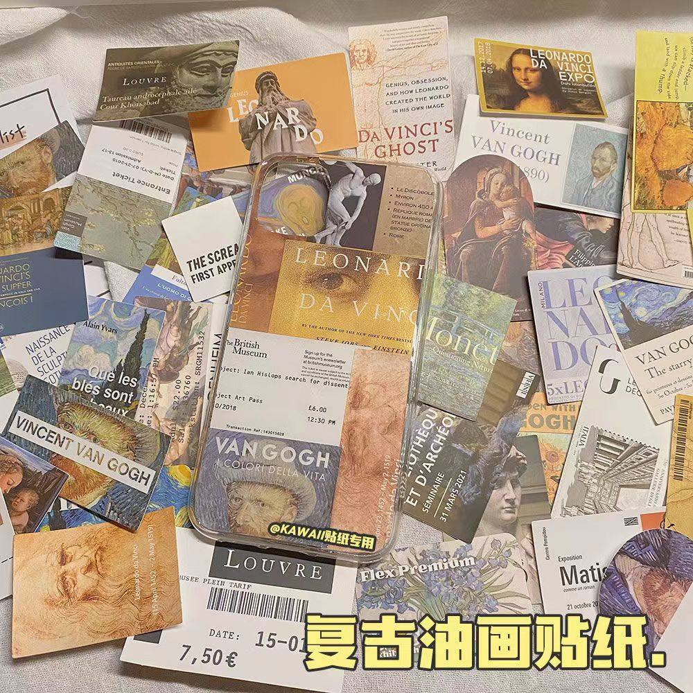 50张艺术馆文艺油画票根涂鸦水杯装饰行李箱笔记本吉他防水贴纸