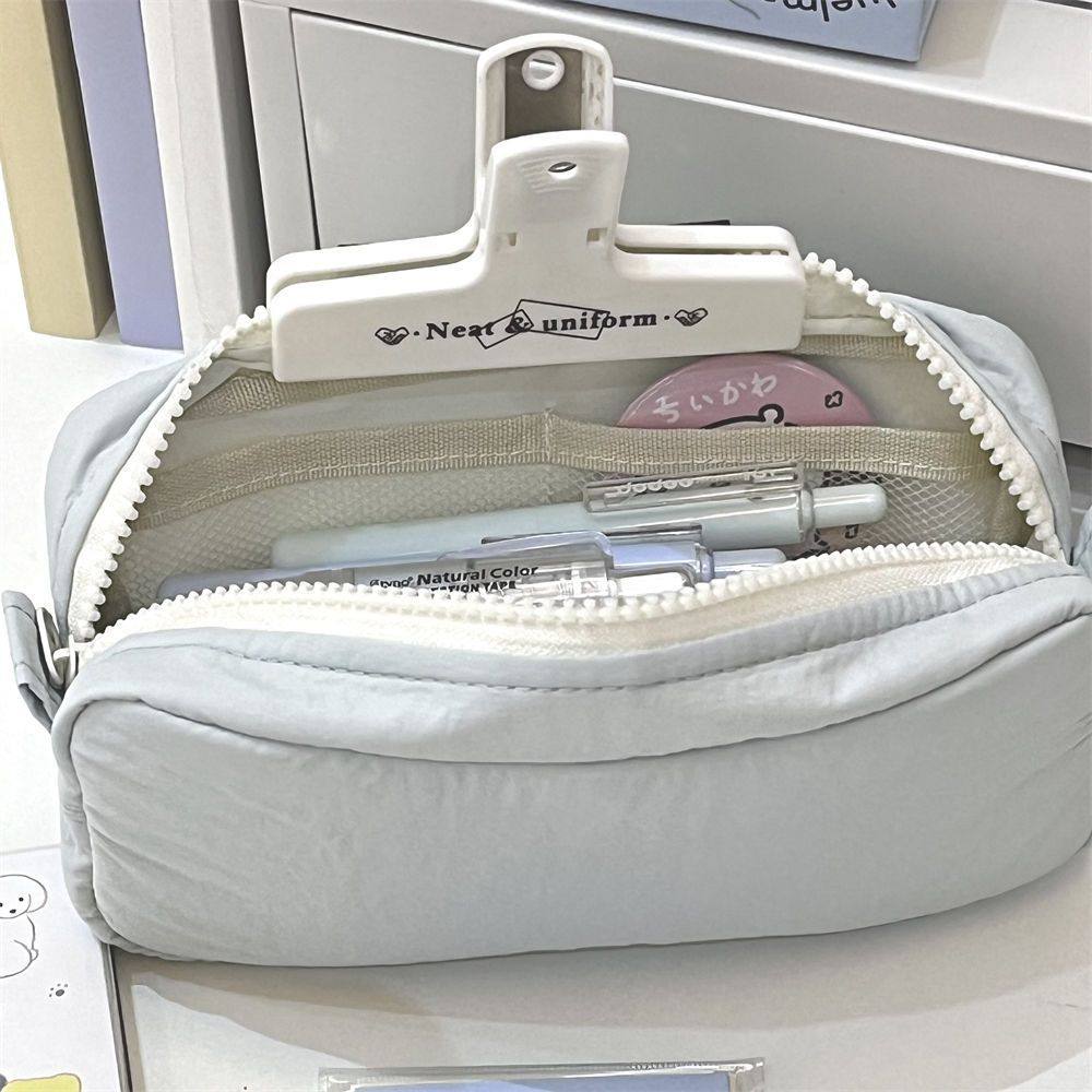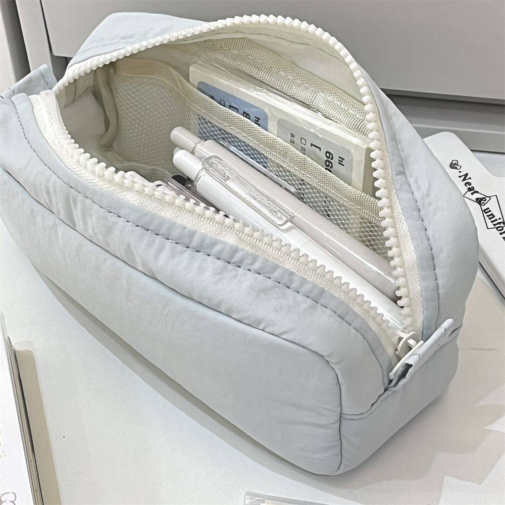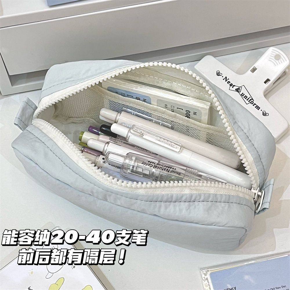 简约纯色系海盐蓝笔袋ins小清新高颜值文具盒大容量多隔层收纳袋