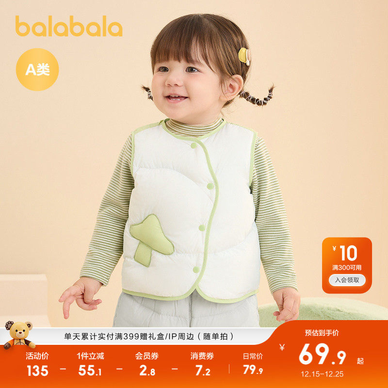 巴拉巴拉balaOne儿童羽绒马甲女童男童外套上衣新款童装2025秋冬