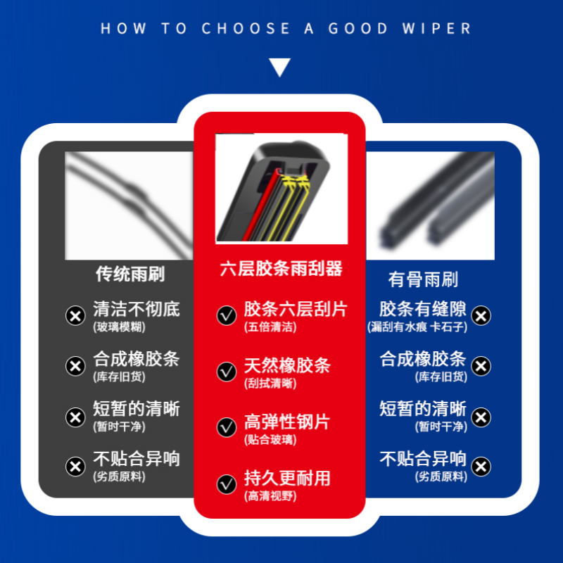 [合金钢片]六层胶条雨刮器汽车无骨雨刷静音双胶条前雨刷片原装