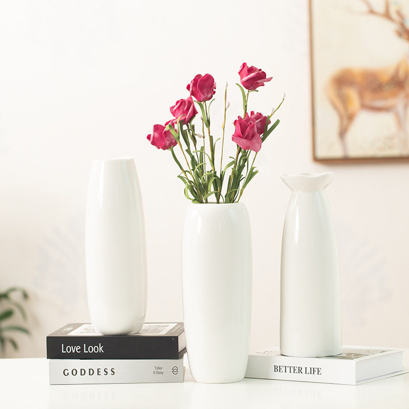 中式白色亮面陶瓷花瓶水培高级感家居客厅餐桌干花插花装饰品摆件