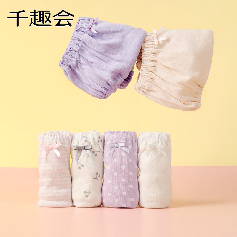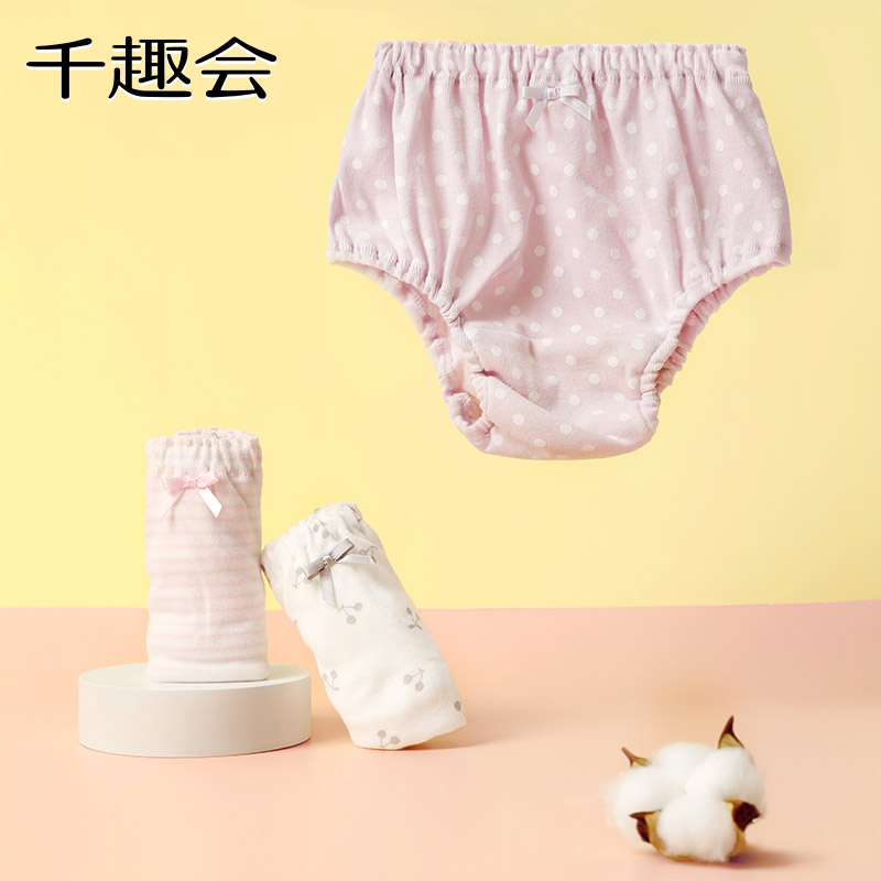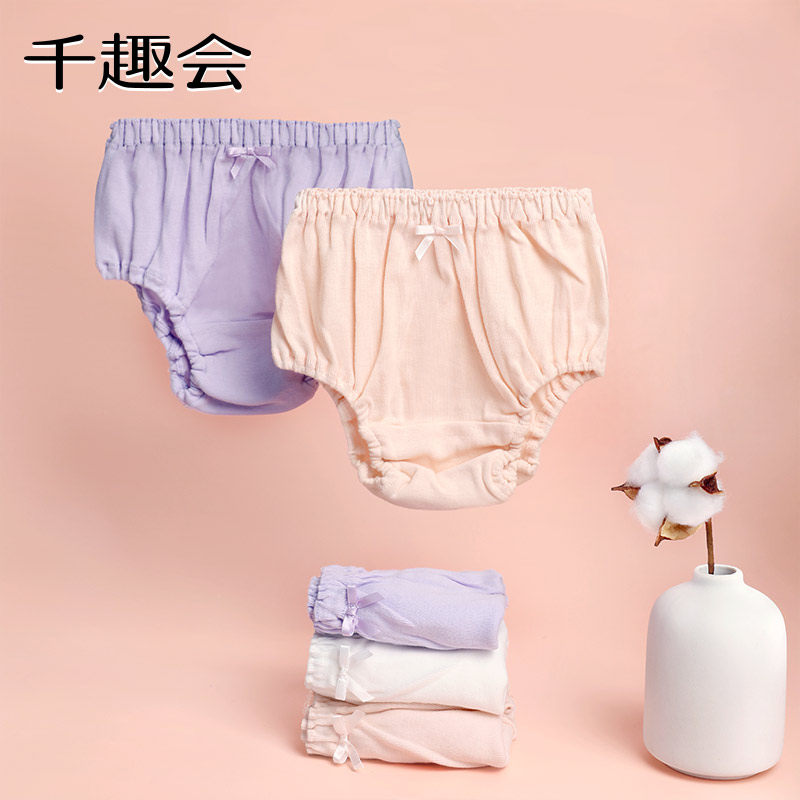 千趣会儿童秋季女童纯棉花苞裤不夹pp透气短裤宝宝三角内裤3条装