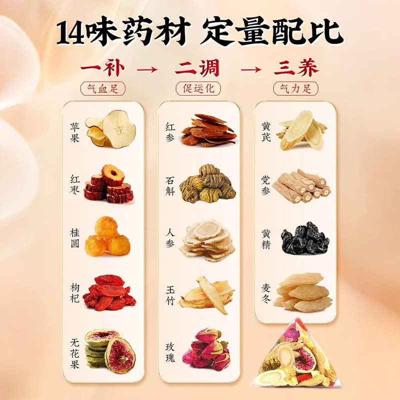 苹果黄芪水麦冬红枣枸杞素颜水玫瑰党参玉竹女人熬夜暗黄养生花茶
