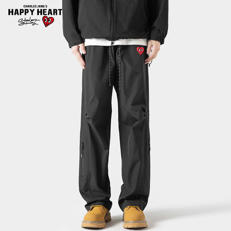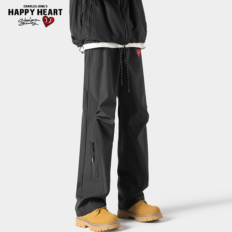查尔斯桃心 美式高街拼接褶皱伞兵裤男春秋季防水防风直筒休闲裤