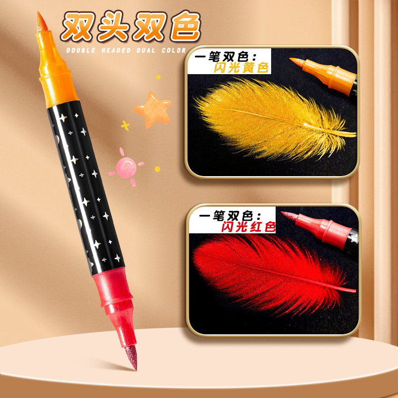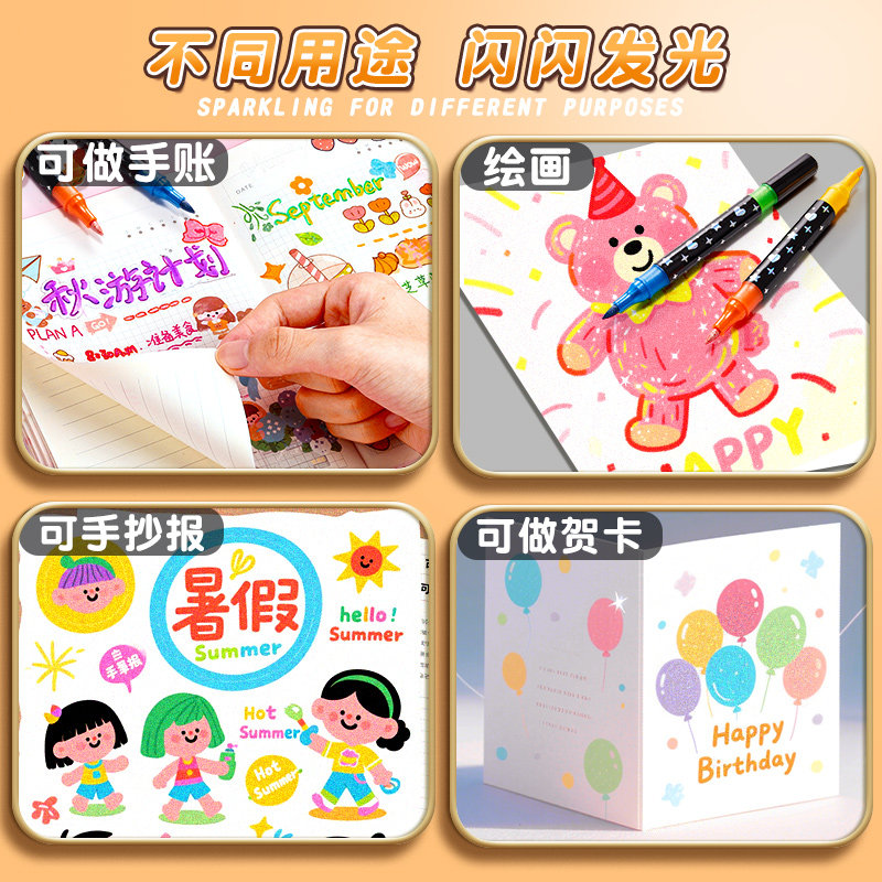 双头双色闪光马克笔小学生美术专用软头啫喱笔荧光笔水彩笔儿童彩色笔带闪粉划重点手帐亮晶晶流沙笔