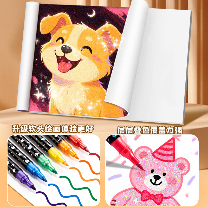 安格尔闪光马克笔笔荧光带闪粉闪闪荧光笔闪粉水彩笔记号笔珠光绘画亮片彩笔儿童学生专用彩绘手账笔炫彩笔