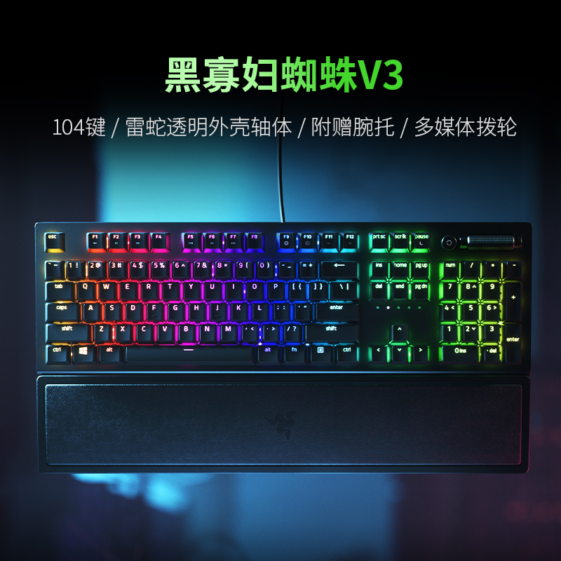 Razer雷蛇黑寡妇蜘蛛幻彩RGB背光V3粉晶台式电脑电竞游戏机械键盘