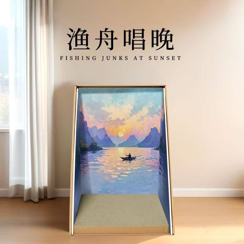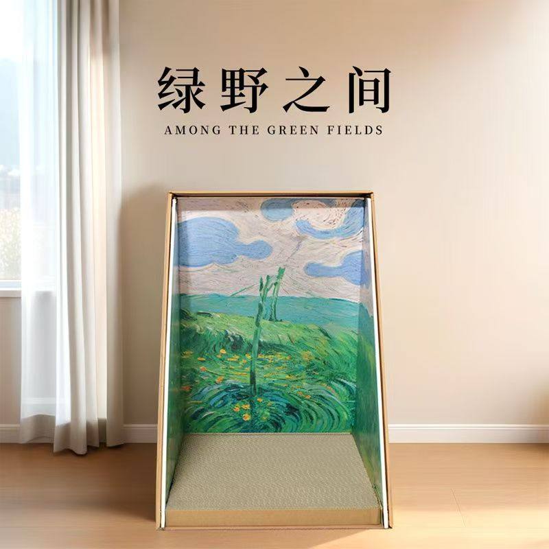 猫咪世界名画油画猫窝半封闭猫屋四季通用耐磨超大猫抓板宠物用品