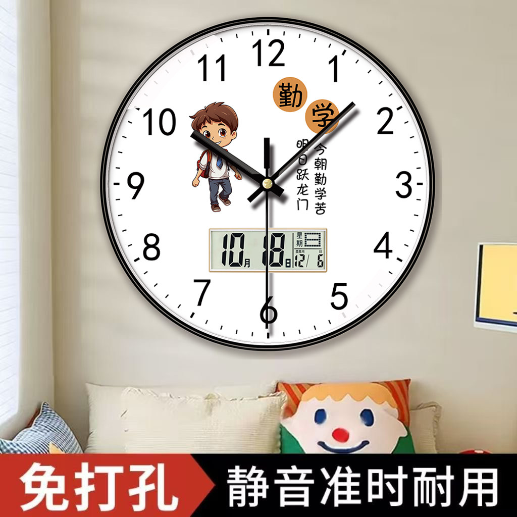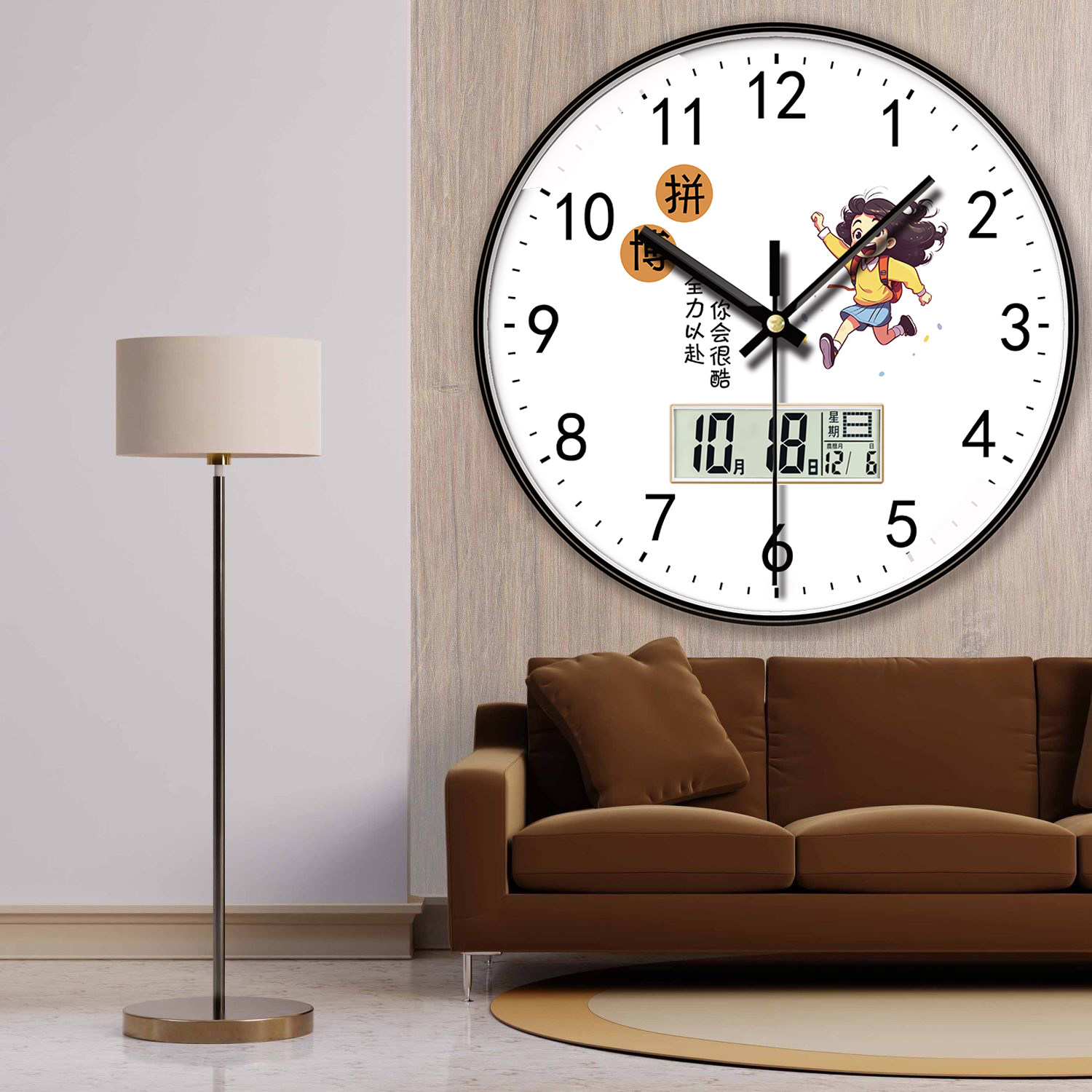 励志静音万年历挂钟儿童房客厅家用男女孩卧室钟表温度2025新款
