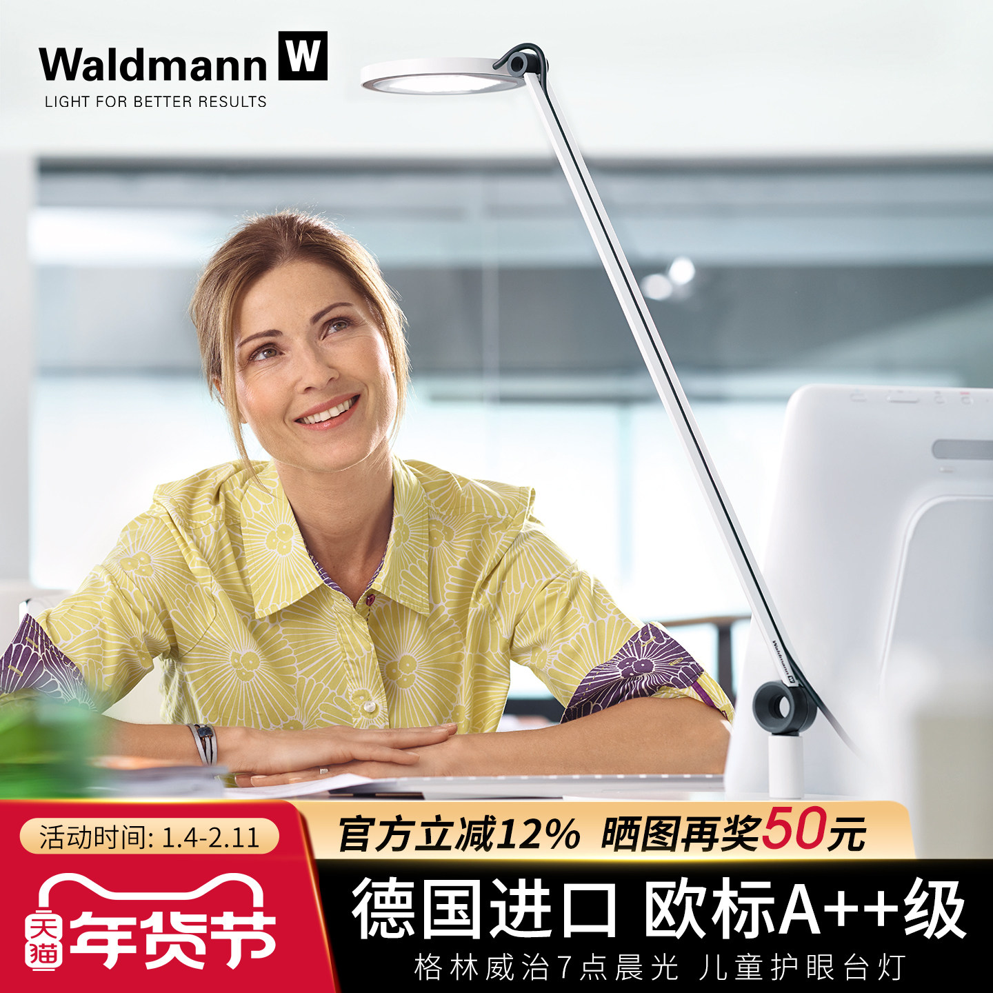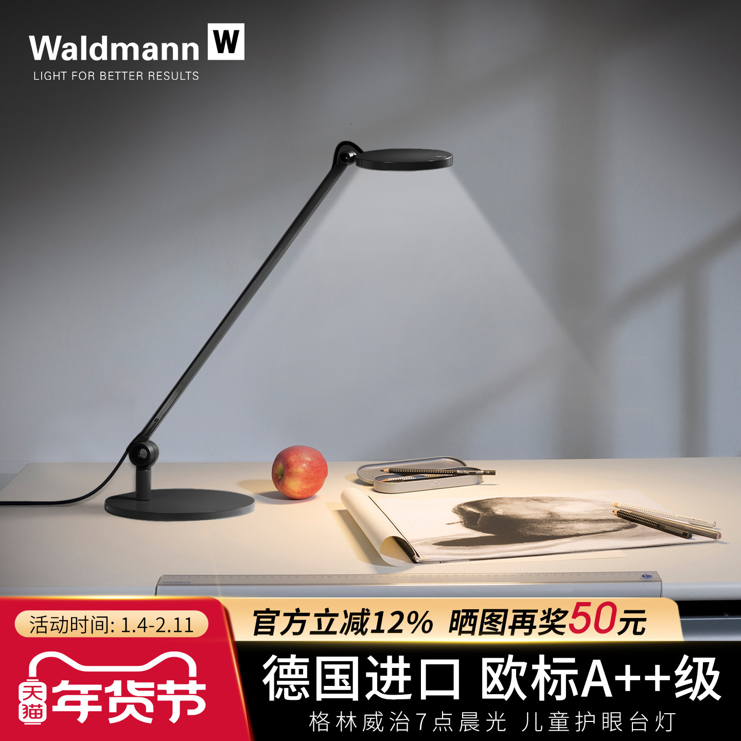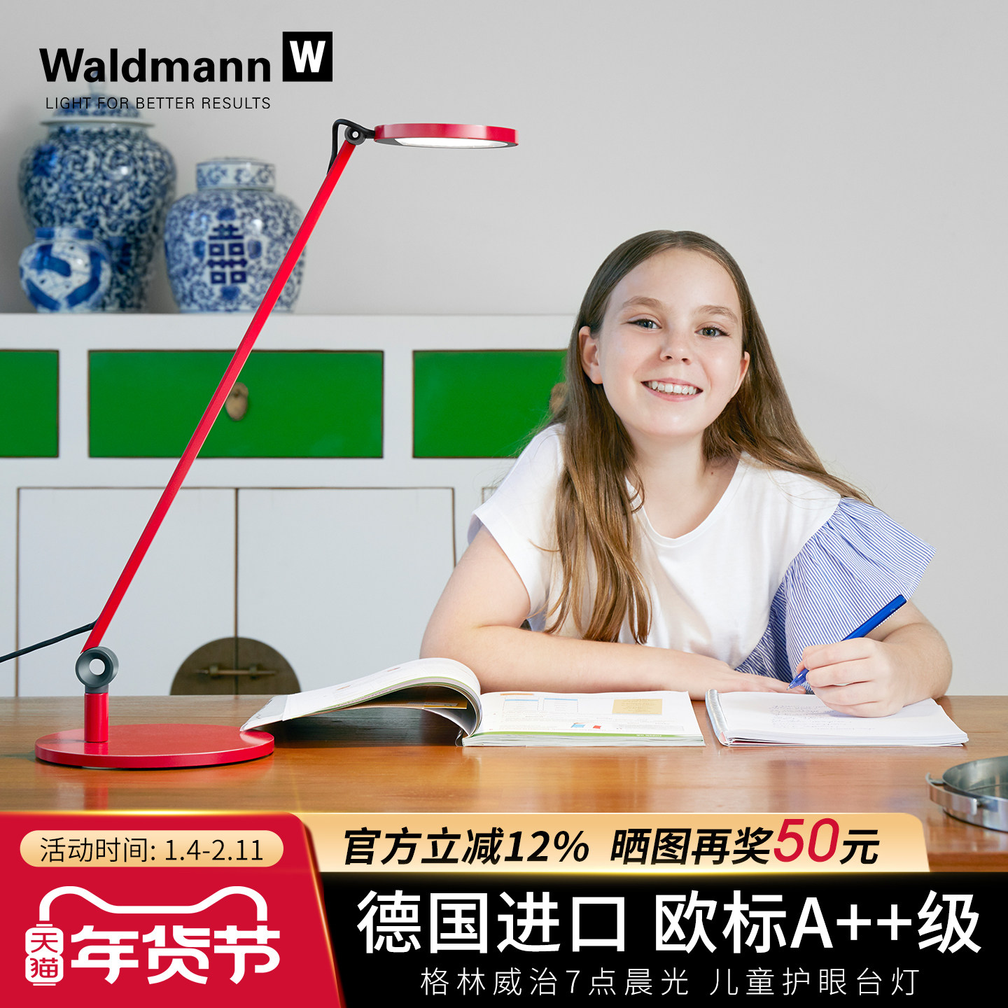 德国进口Waldmann儿童护眼台灯 沃达迈小学生学习阅读专用书桌LED