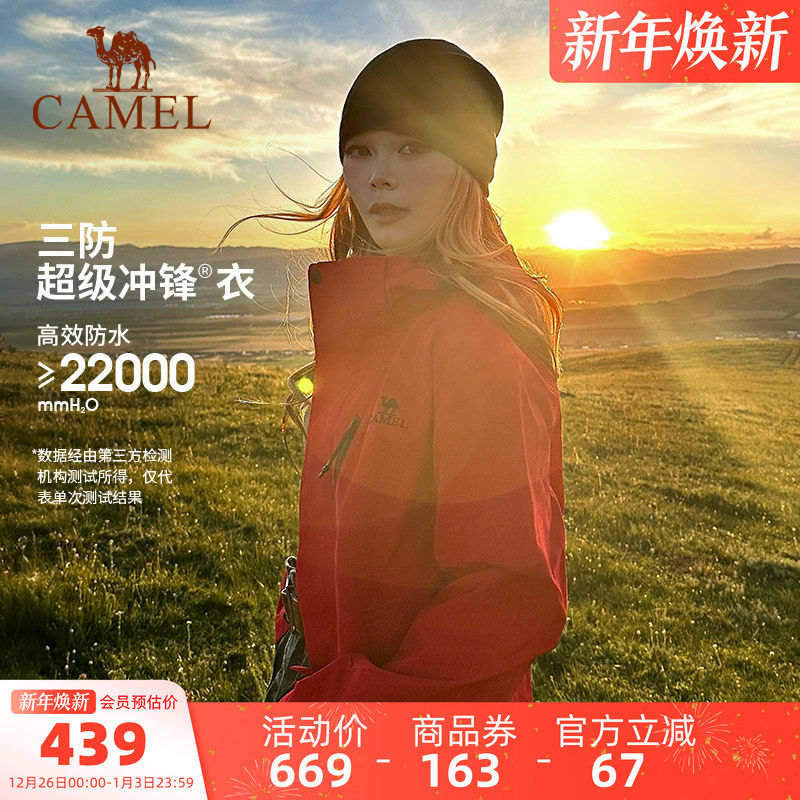 【双12超级爆品日】骆驼3514系列冲锋衣男女款三合一防风防水外套