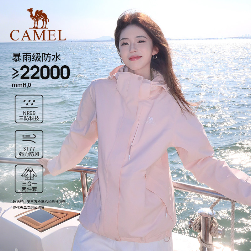 【春日粉】骆驼户外粉色冲锋衣男女款三合一鹅绒内胆羽绒服外套冬