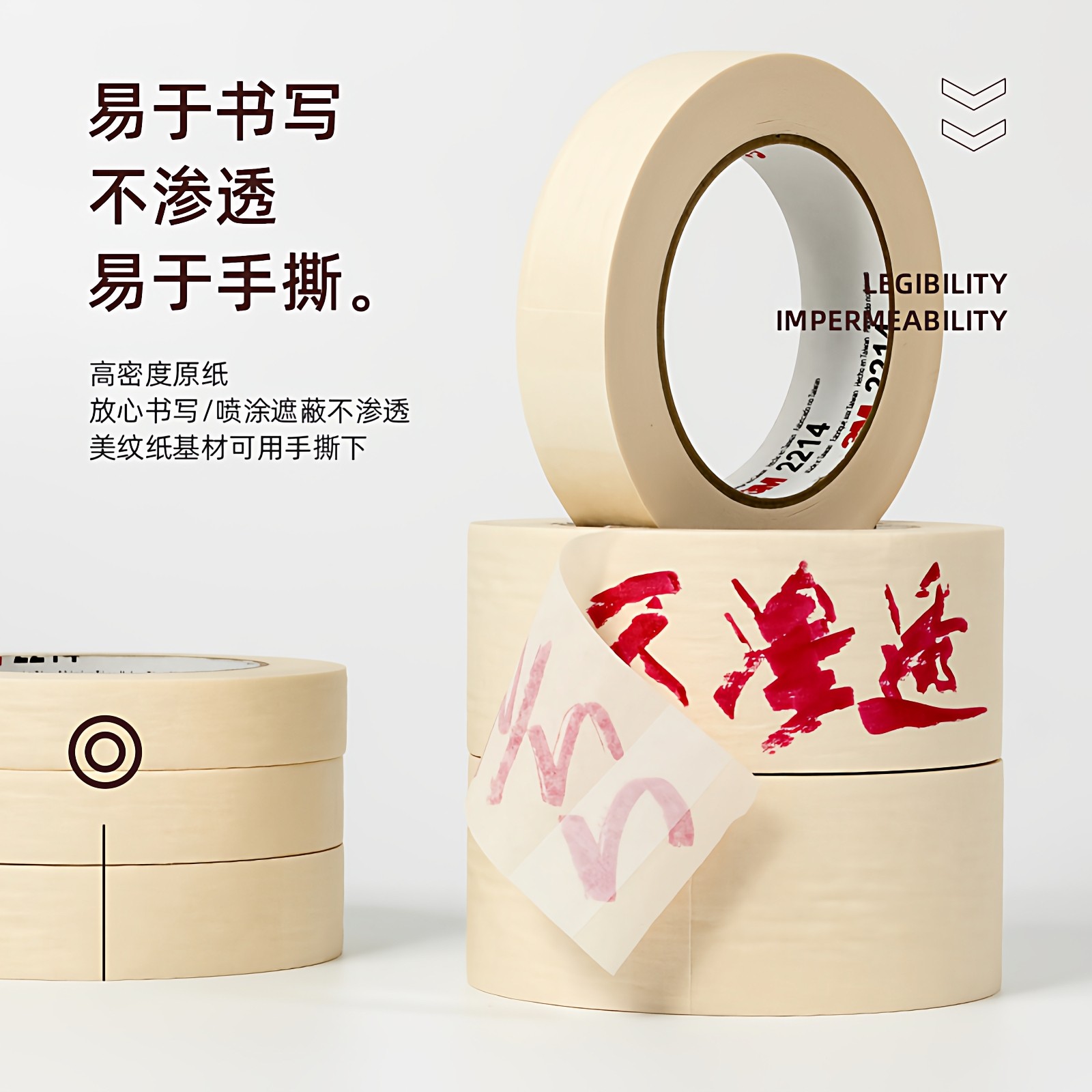 3M2214白色美纹纸胶带无痕汽车喷漆遮蔽可书写分色美甲美缝可手撕