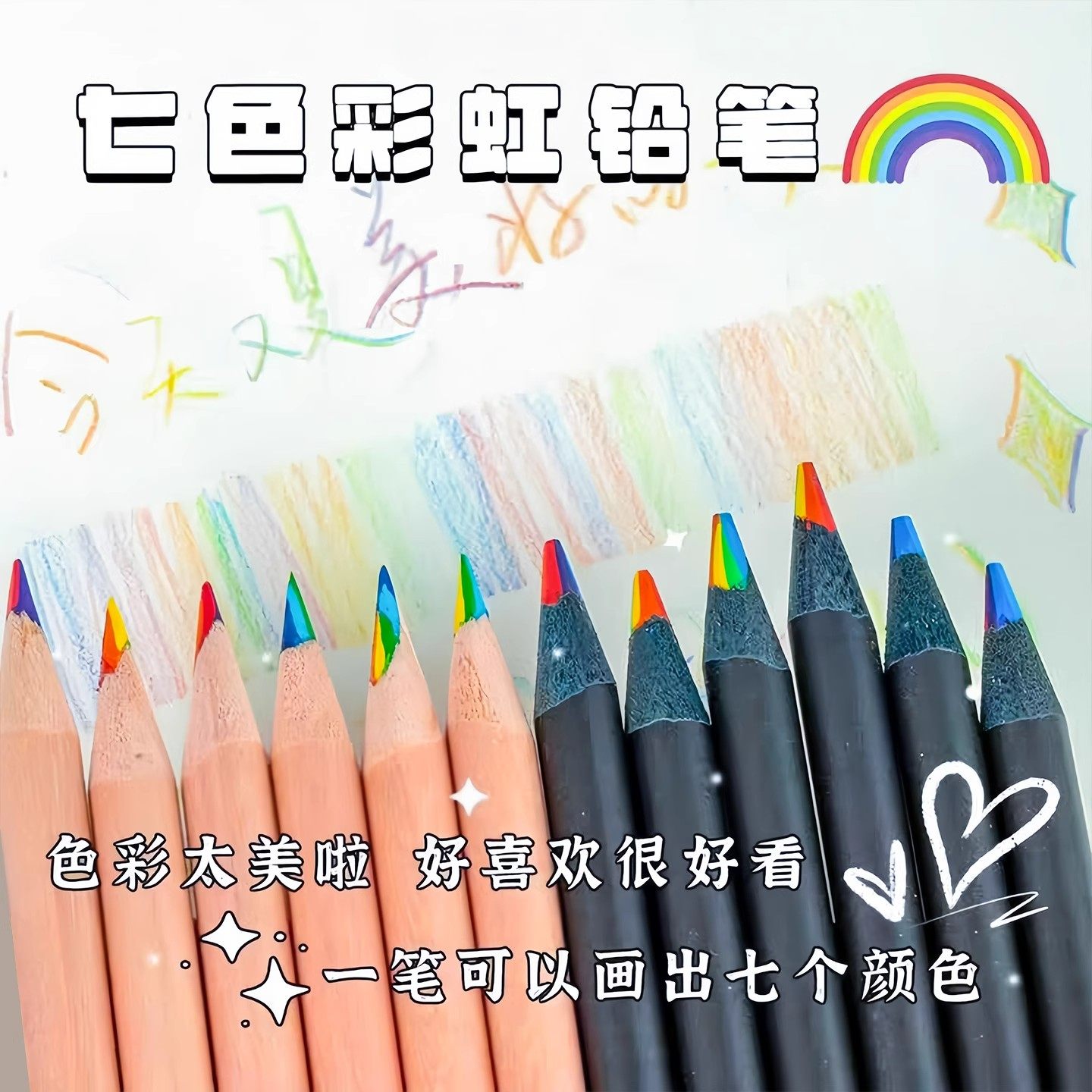 七色彩虹铅笔一笔多色铅笔彩虹笔渐变色彩混色彩铅笔手绘儿童画笔
