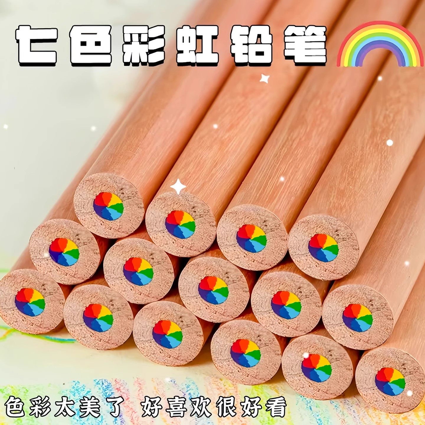 艾黎 七色彩虹铅笔彩色笔芯diy儿童手绘渐变彩虹笔混色一笔多色小学生无毒幼儿园美术绘画专用填色魔幻画笔