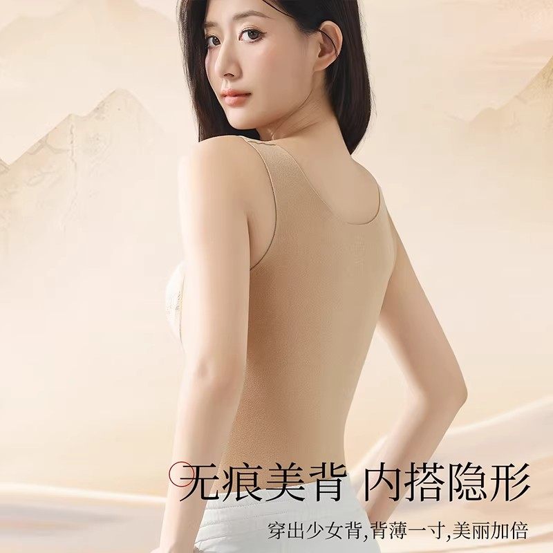 半练方领宽肩保暖背心女秋冬新款带胸垫吊带吸湿发热内搭显瘦打底
