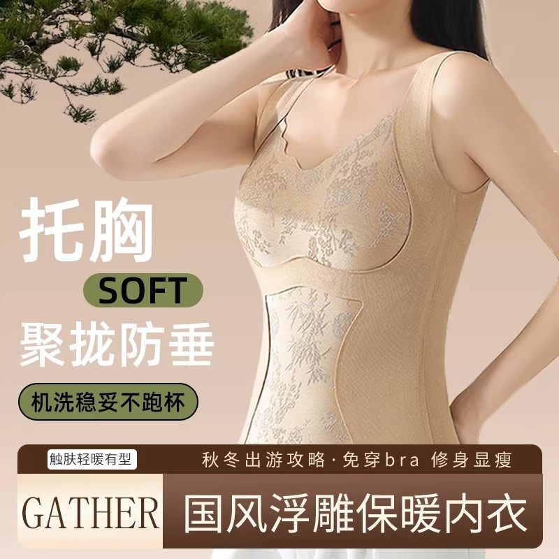 张雨绮|曲线主义保暖背心女塑身内搭冬带胸垫磨毛胸罩一体式内衣