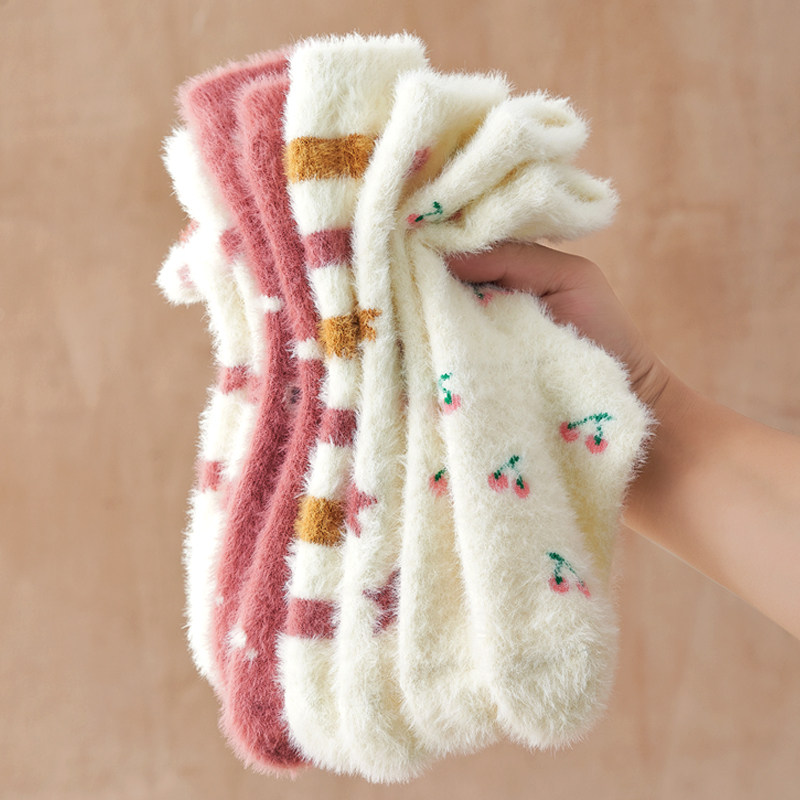 水貂绒厚袜子女冬季加绒居家睡眠袜保暖地板袜珊瑚绒袜子国货中筒