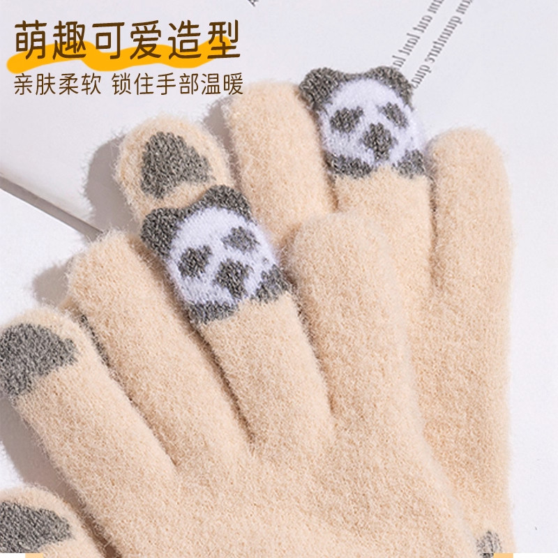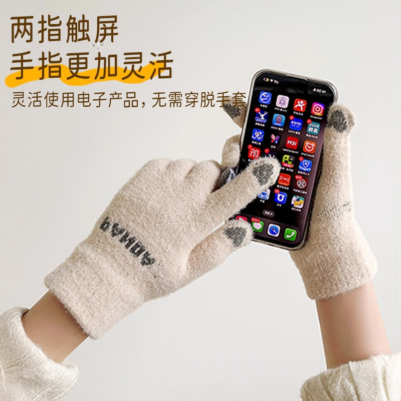 毛线手套女冬季可爱可触屏加绒加厚保暖骑行车五指冬天防寒棉暖手