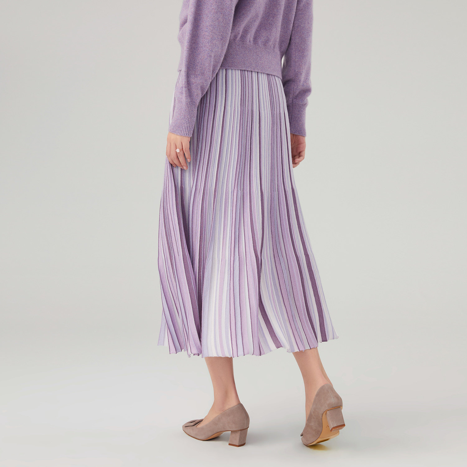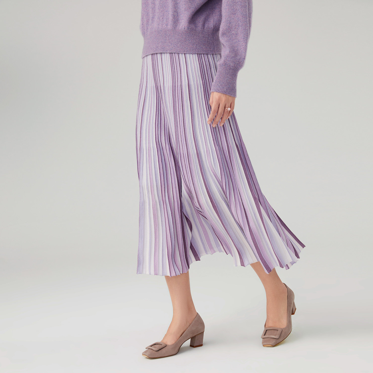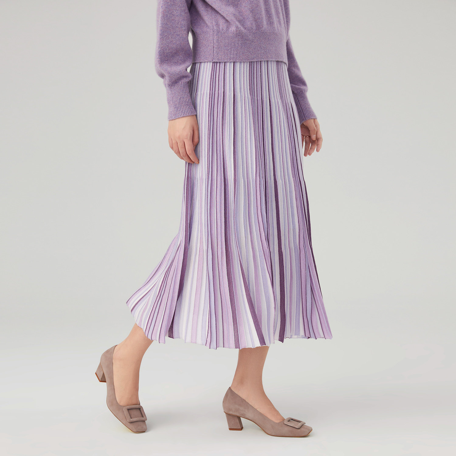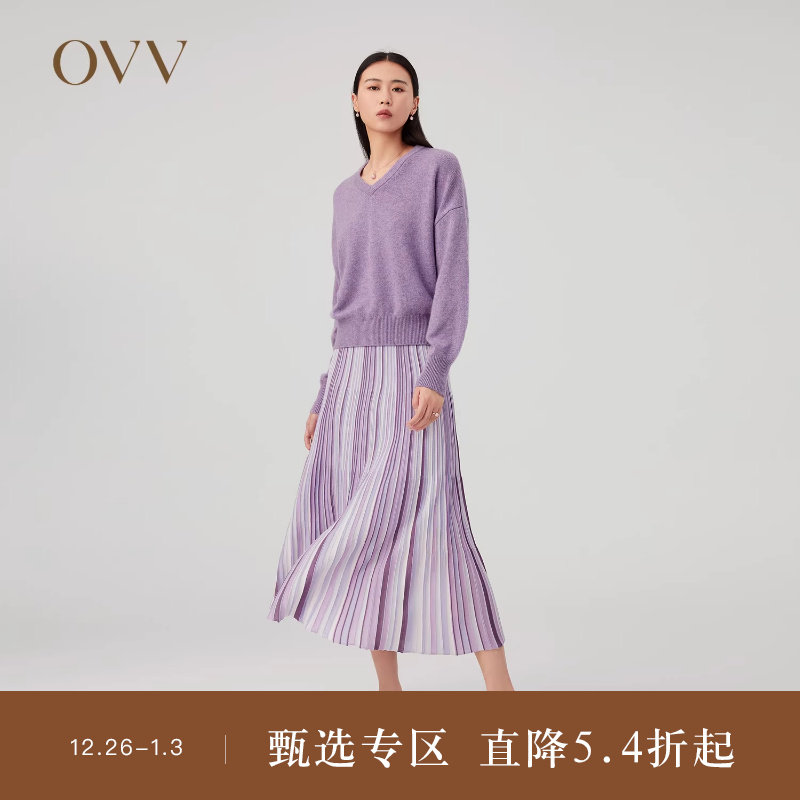 OVV秋冬新款女装渐变设计镶拼百褶羊毛针织休闲半身裙