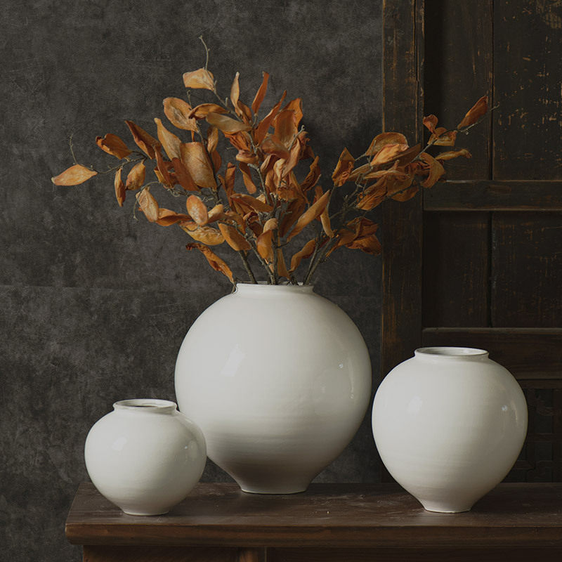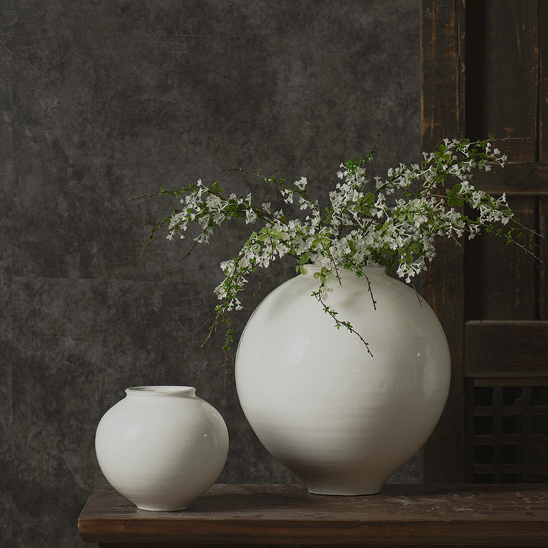 景德镇手工陶瓷创意复古花瓶白色陶艺摆件禅意插花干花民宿装饰品