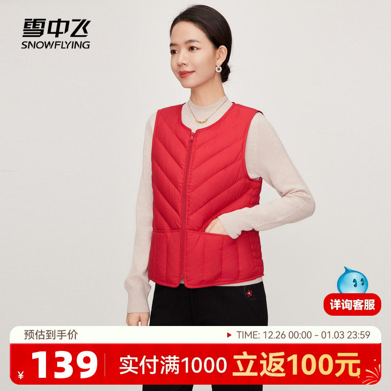 雪中飞2025春秋新款女士羽绒背心马甲休闲百搭内搭简约舒适妈妈