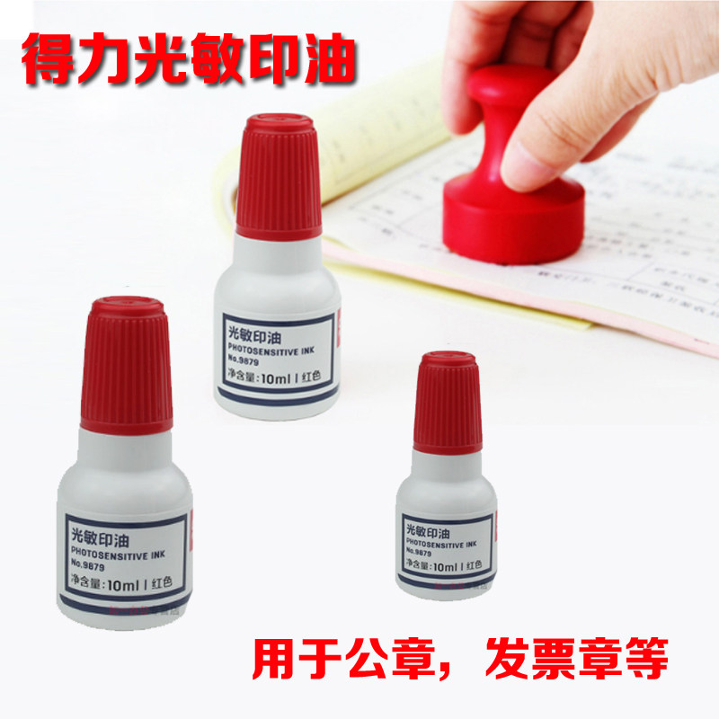 得力9879光敏印油 红色发票印章专用光敏油黑蓝色原子油油墨快干