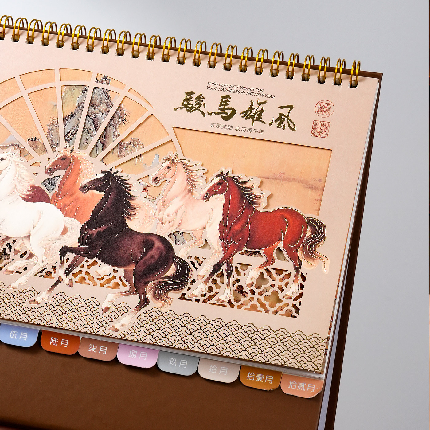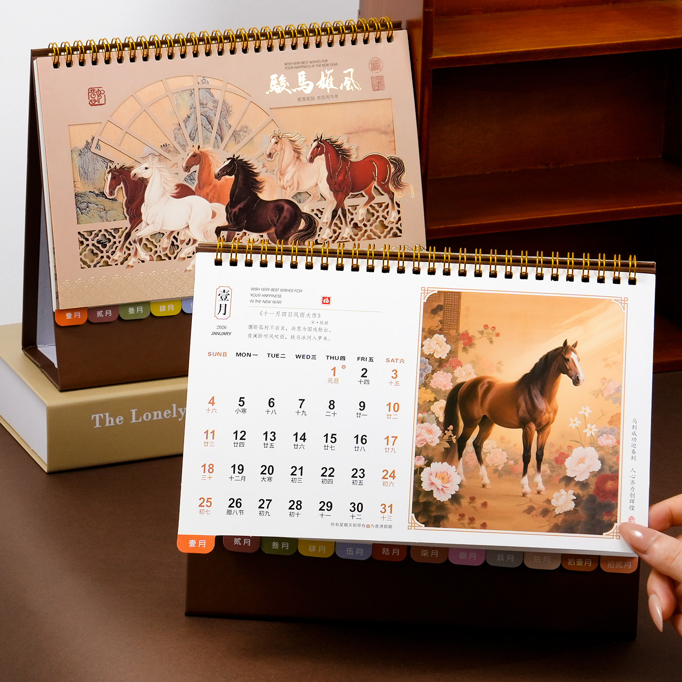 马年日历2026年新款台历定制宝马鸿程中国风桌面摆件高考倒计时考研打卡计划本记事本可订做月历生日礼物古风