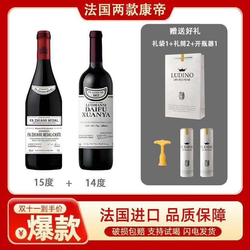 法国进口罗曼尼·轩雅 古萨奇康帝干红葡萄酒六支礼袋送礼装15度