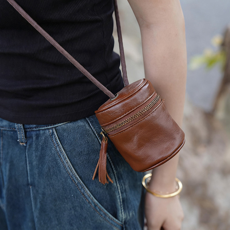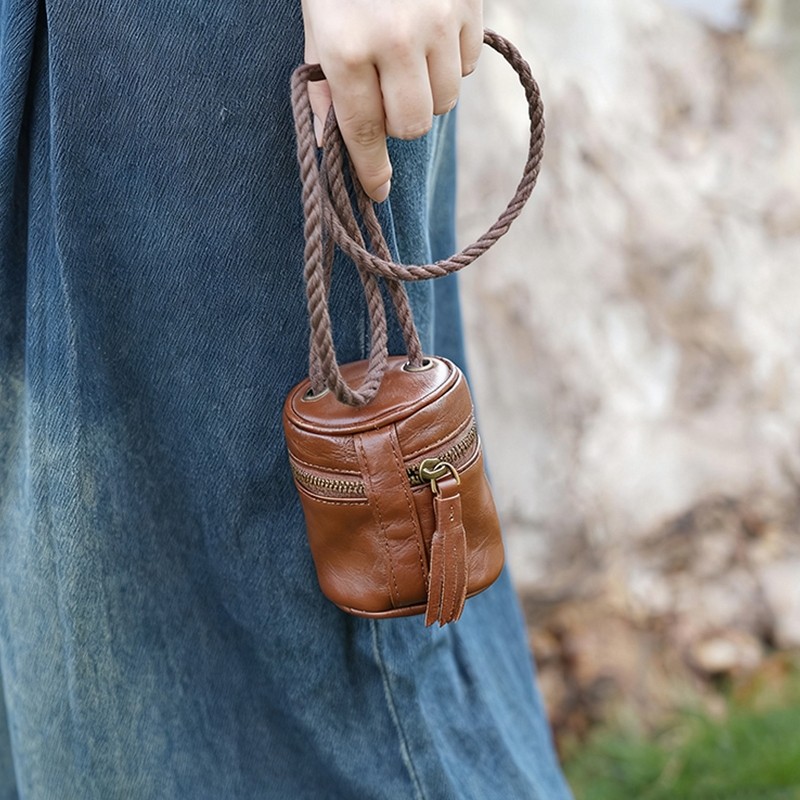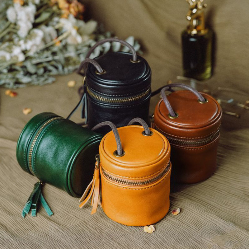 牛皮钥匙口红包手串包收纳包单肩斜挎小众文玩复古真皮质感小包女