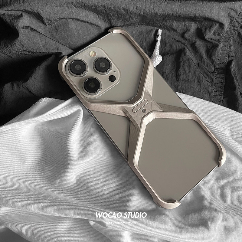 苹果14无边框铝合金超薄手机壳iphone16promax新款13高级感保护套镂空15promax散热创意个性男人钛金灰色特别