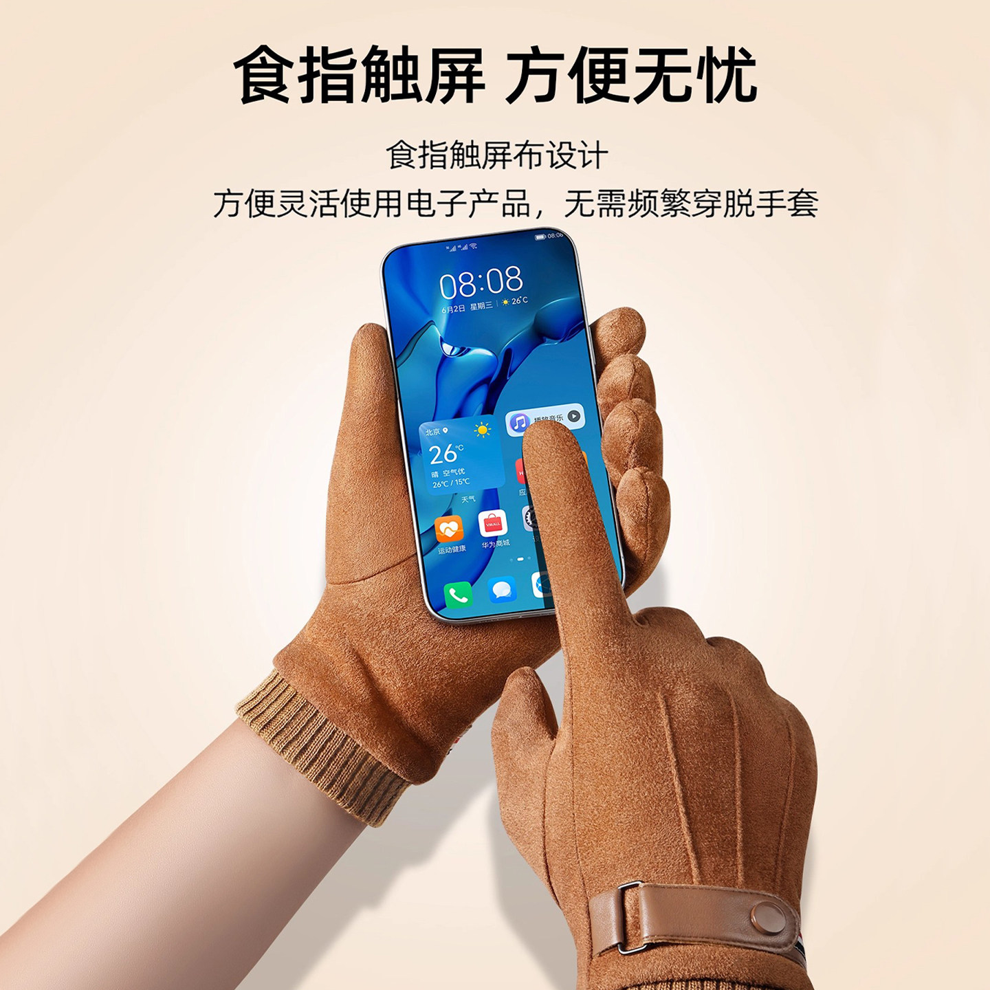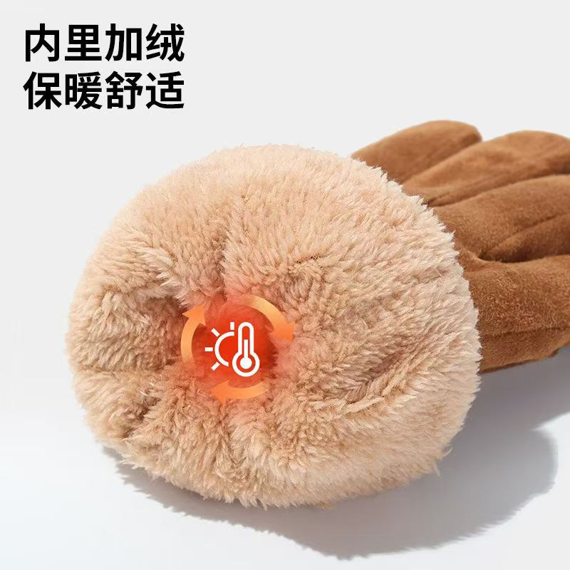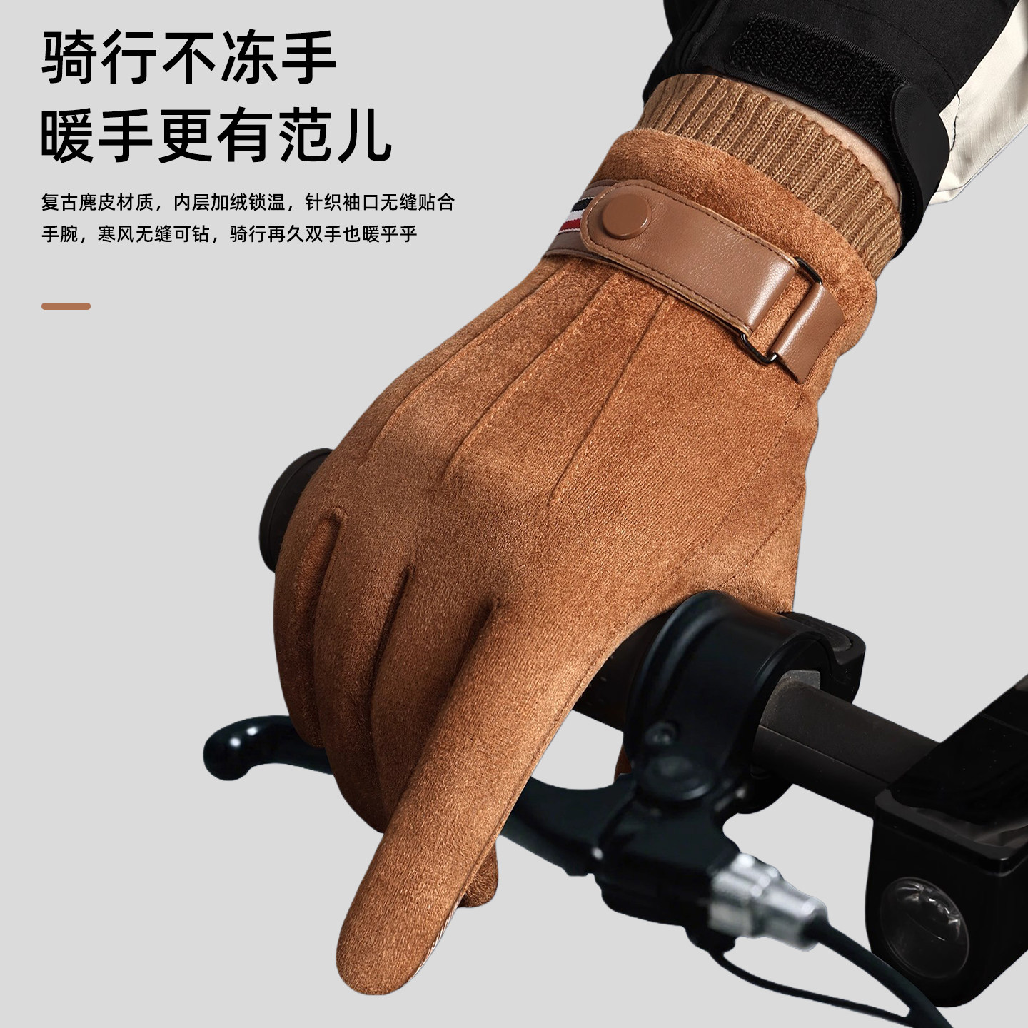 麂皮绒手套男防风秋冬季加绒保暖防寒触屏商务开车骑手送外卖快递