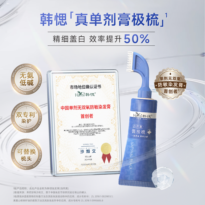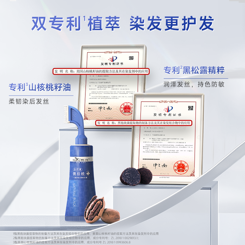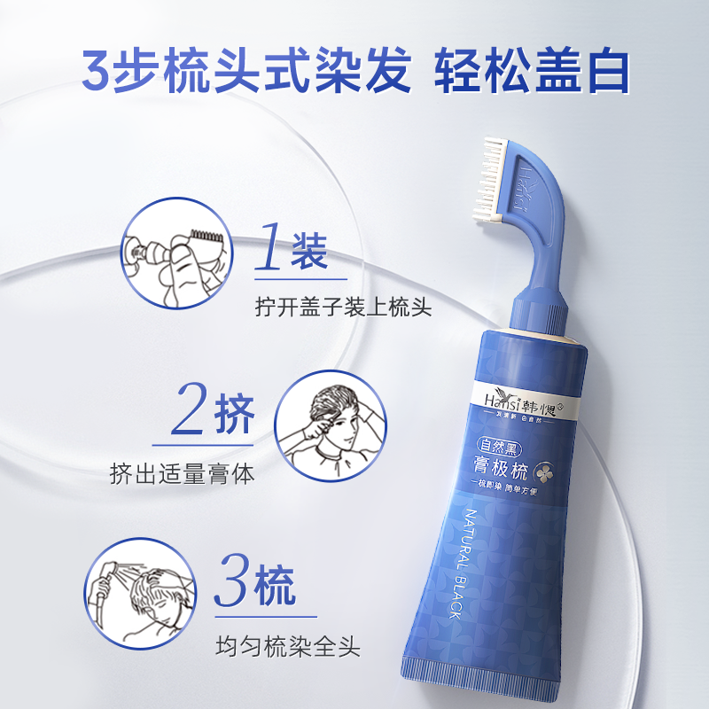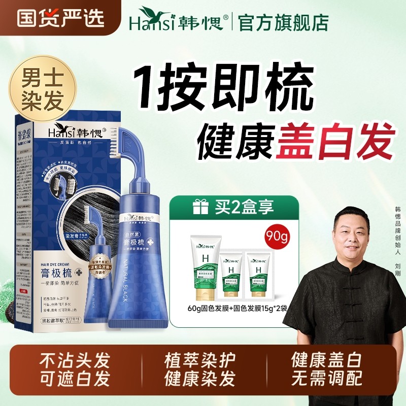 韩愢膏极梳染发膏植物纯自己在家染发果染膏盖白发一梳黑染发剂
