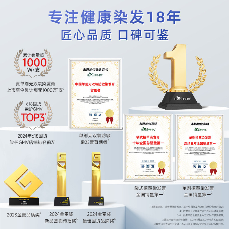 韩金靓正品染发剂黑茶色棕植物泡泡刺激无纯自己在家染发膏盖白女